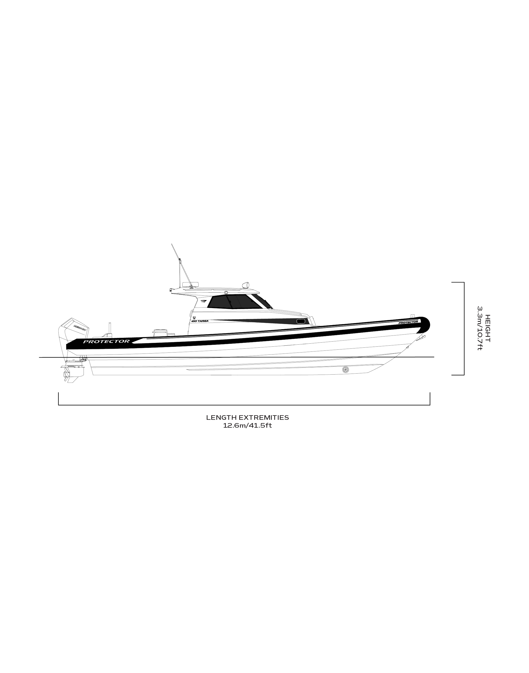 The Protector 410 Targa incorporates the best of our 380 Targa but with a larger aft cockpit. Built for discerning owners or organisations who require more deck space for entertainment or commercial purposes. Built tough with Protector’s high-quality precision craftsmanship for the most demanding users, the Protector 410 Targa a supremely equipped, high-speed, ultra-comfortable adventure boat providing the ultimate all-day on-the-water experience.